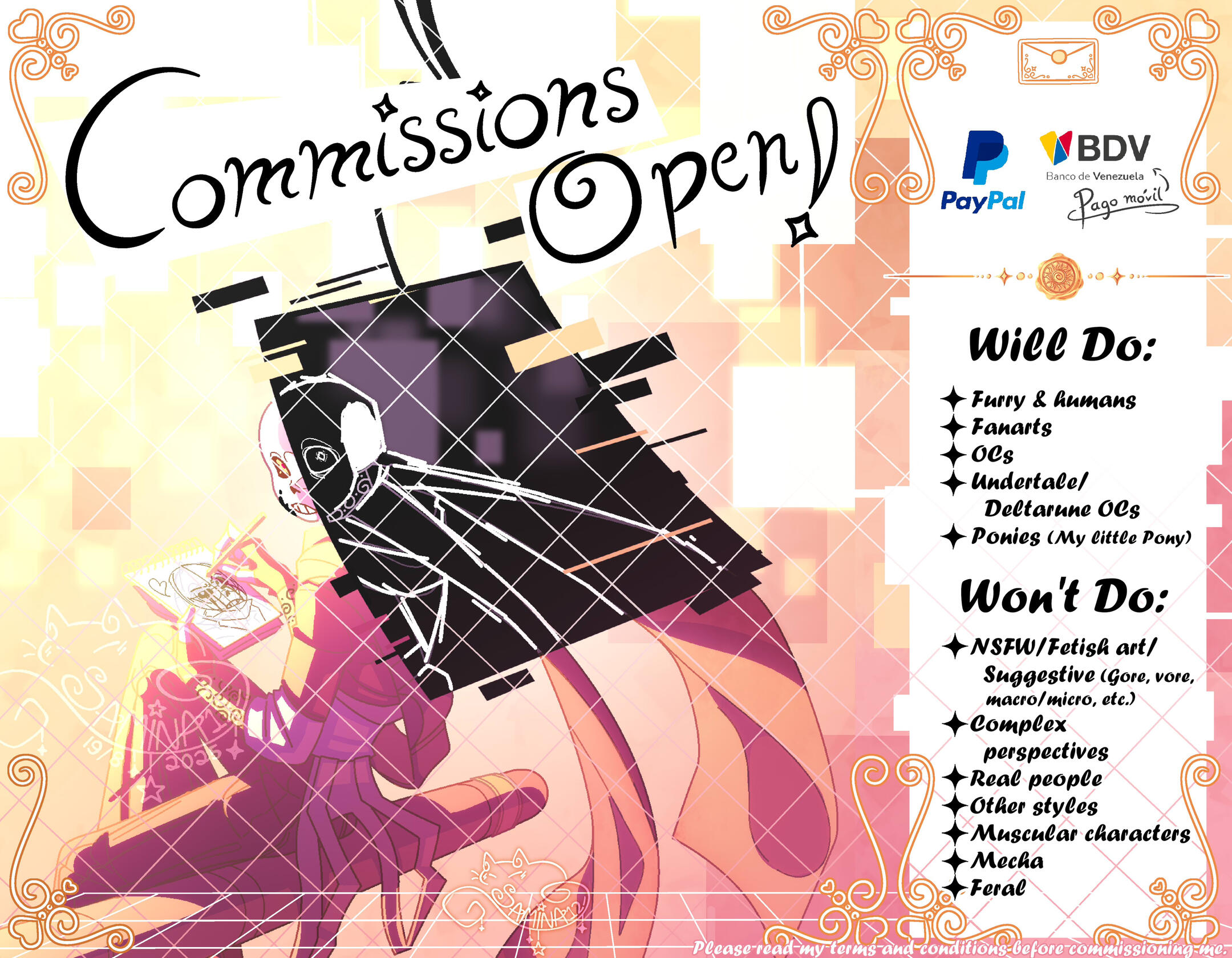 Please read my terms and conditions before commissioning me to avoid misunderstandings. By commissioning me, you agree that you have read and understood the entirety of my terms and conditions.